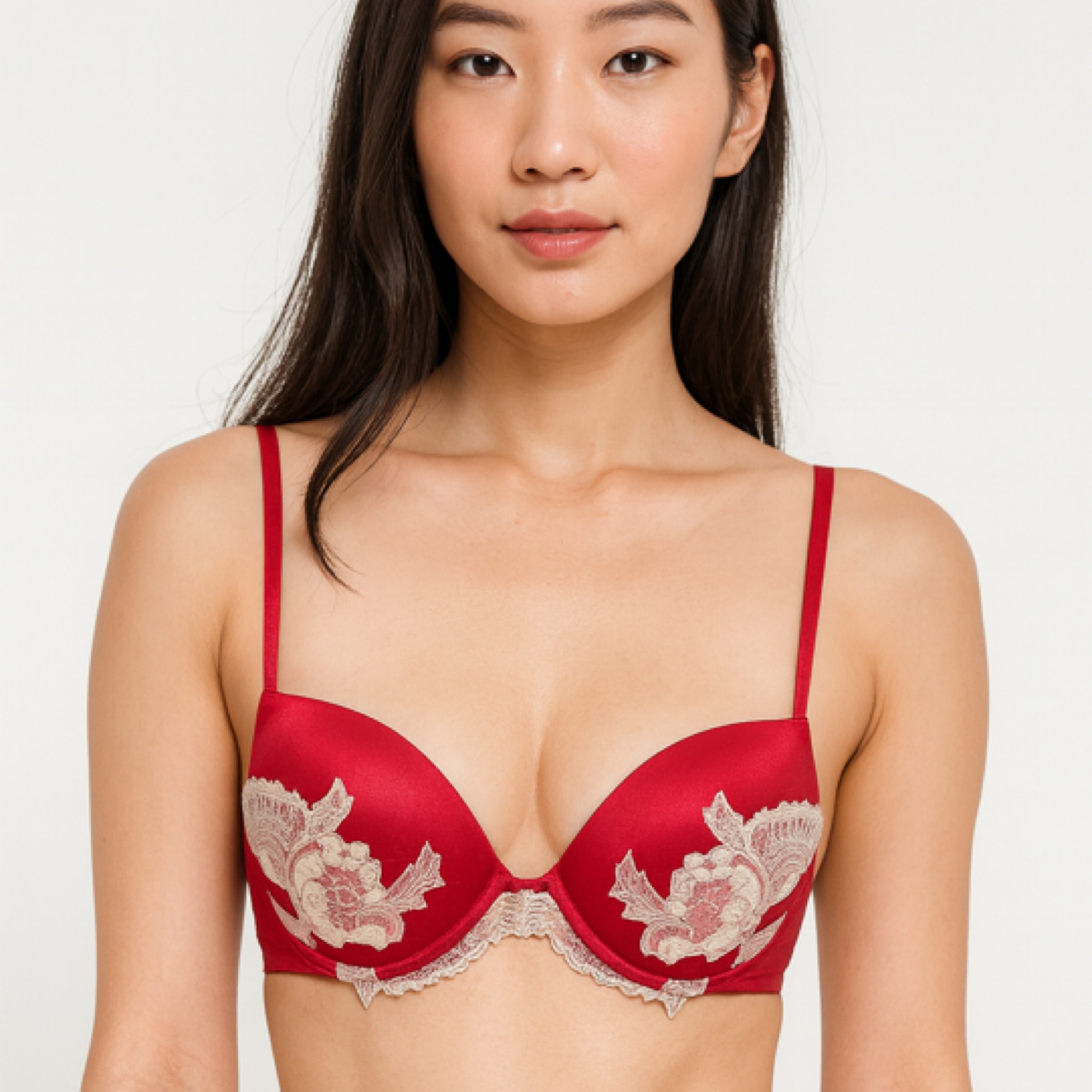 Бюстгальтер пуш-ап из натурального шелка с аппликацией из вышивки, выполненной по технике фрастальо.