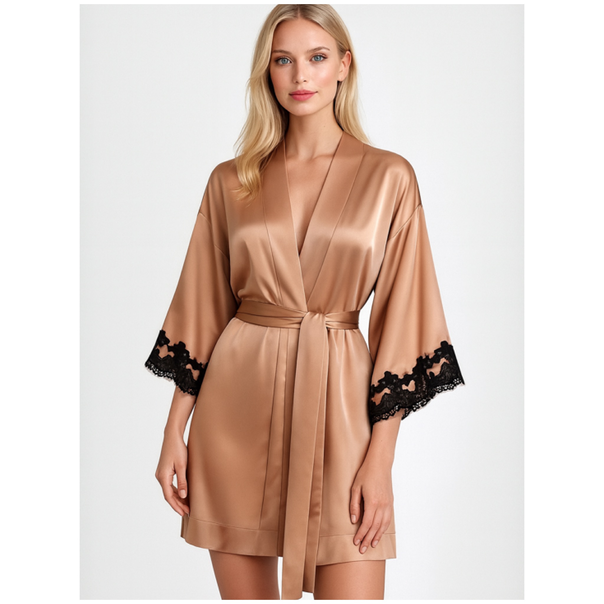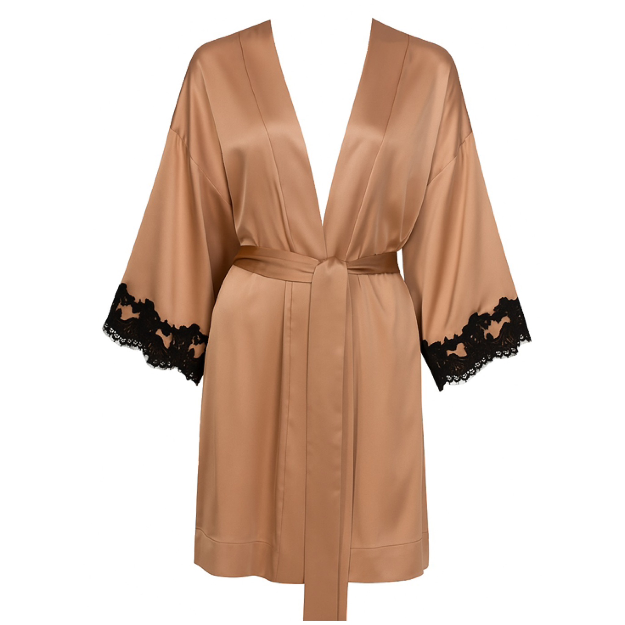 Халат из натурального шелка с аппликацией из вышивки, выполненной по технике фрастальо.