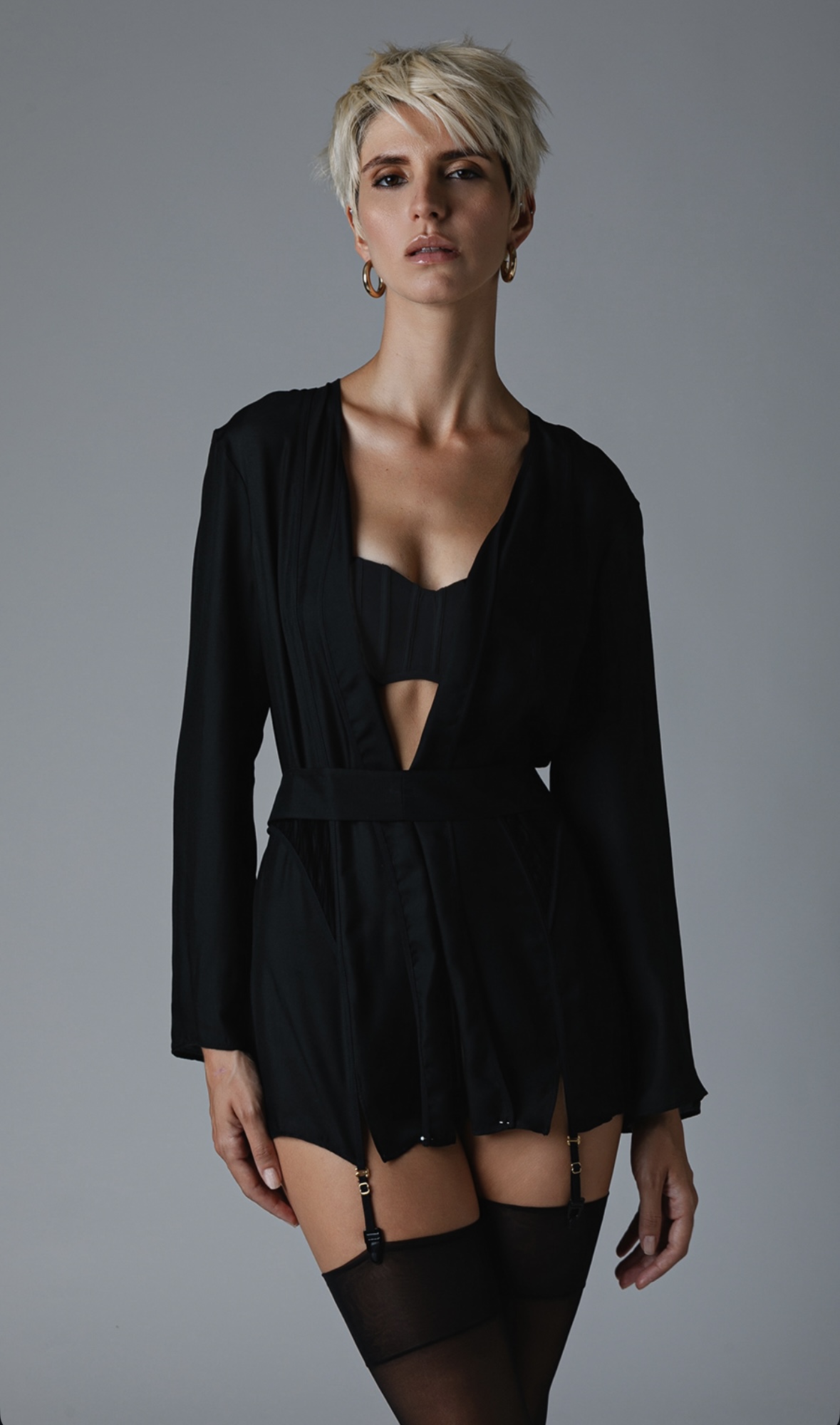 Халат из вискозы и шелка с застежками под чулки от бренда C.alla