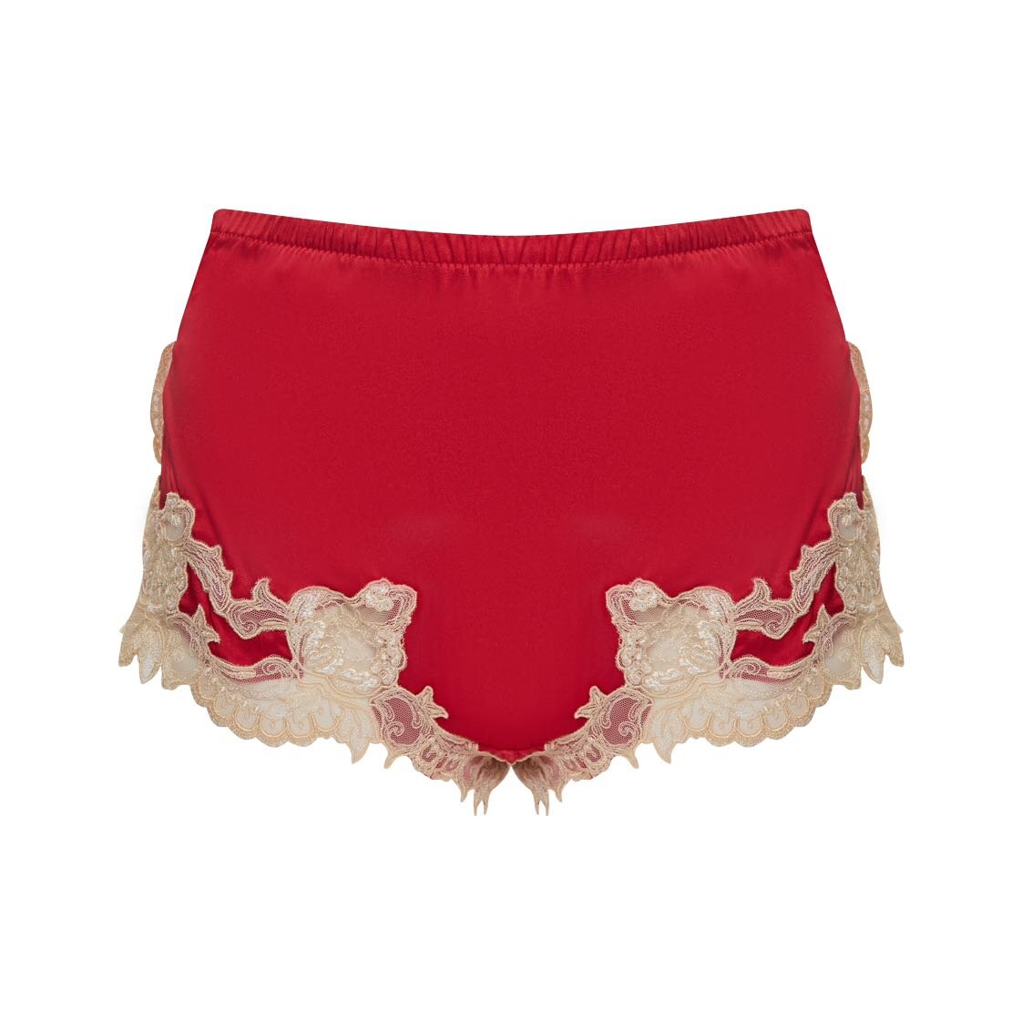 Шорты из натурального шелка с аппликацией из вышивки, выполненной по технике фрастальо.